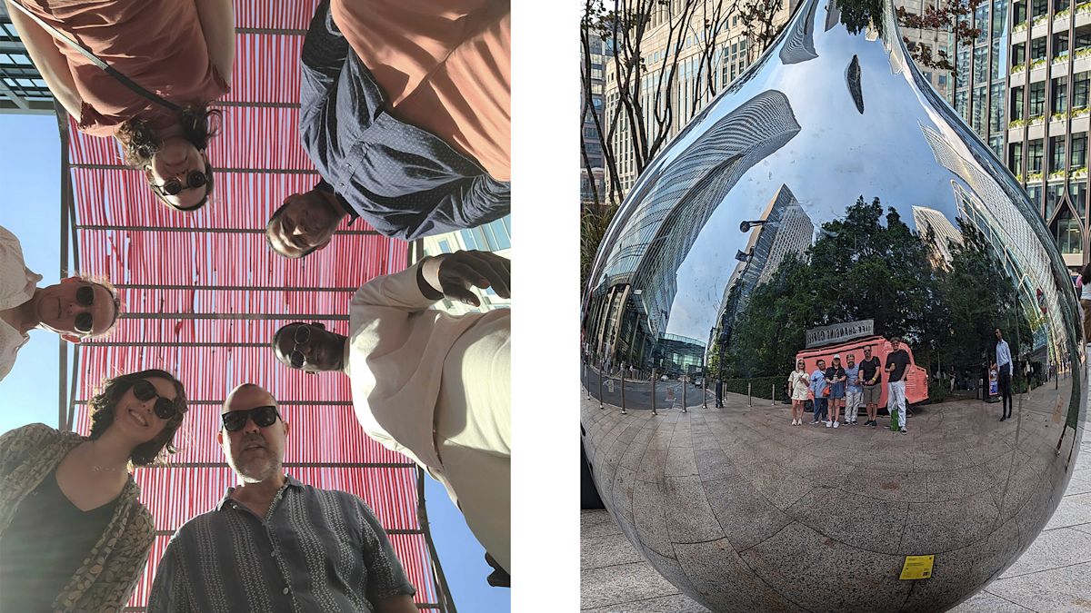 It was then time to take things down a notch. Our clever colleagues within the lab_ culture club had organised the perfect way to do so, with a scavenger hunt to take us from Canary Wharf to our next destination in Stratford. The following hour was spent taking selfies with pigeons, scouring the land for a farm animal, and persuading Mercedes showroom staff to let some of us sit in a convertible!