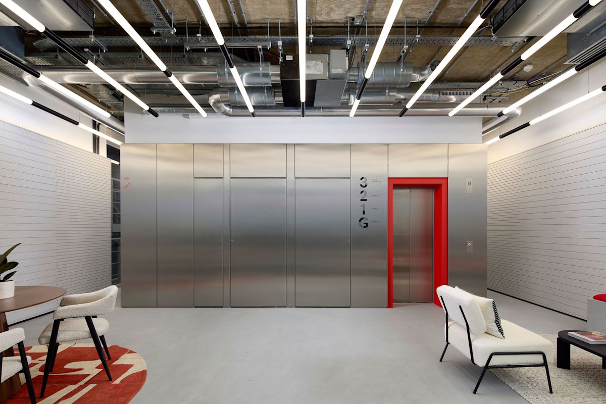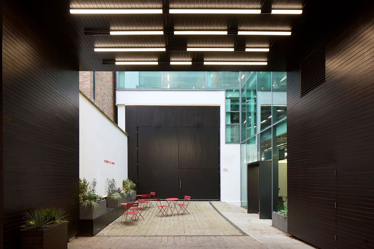 The building required EPC upgrades and included an opportunity to improve the overall building experience. This involved a replacement double-height metal gate facade, the refurbishment of the courtyard and reception, a lift and the creation of end-of-journey facilities within a vacated plant room. We modernised the material palette to keep with the building architecture and addressed the previous lack of vibrancy by introducing bright red accents. The original cedar cladding was stained and metal, felt, and concrete finishes were introduced under a new coherent brand identity.