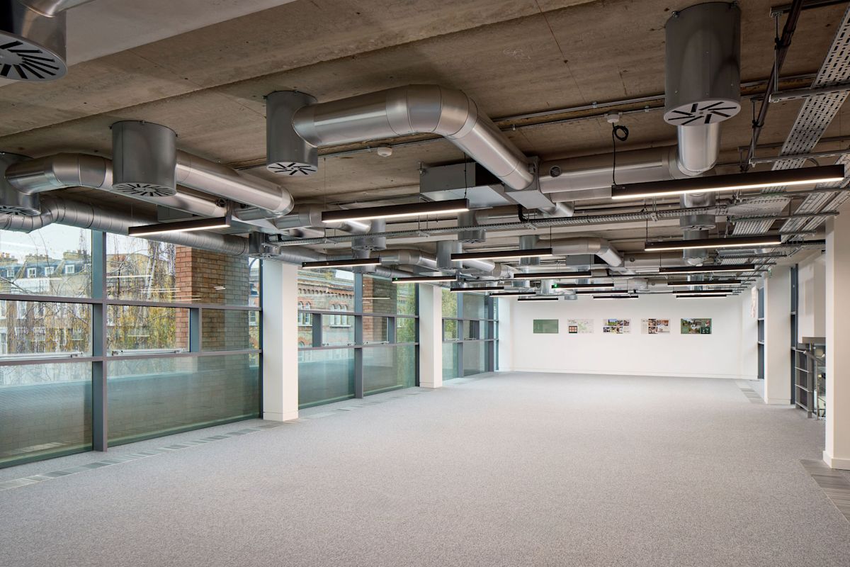 Primrose Hill Works consists of 25,000 sqft of fitted CAT A workspace. Flooded with natural light, the modern accommodation is ideal for any type of tenant; turning previously cold, large volumes into a blend of industrial and contemporary functionality with concrete soffits and new exposed services to maximise ceiling heights. The Third-floor mezzanine level has been upgraded alongside a stunning external terrace overlooking Primrose Hill.